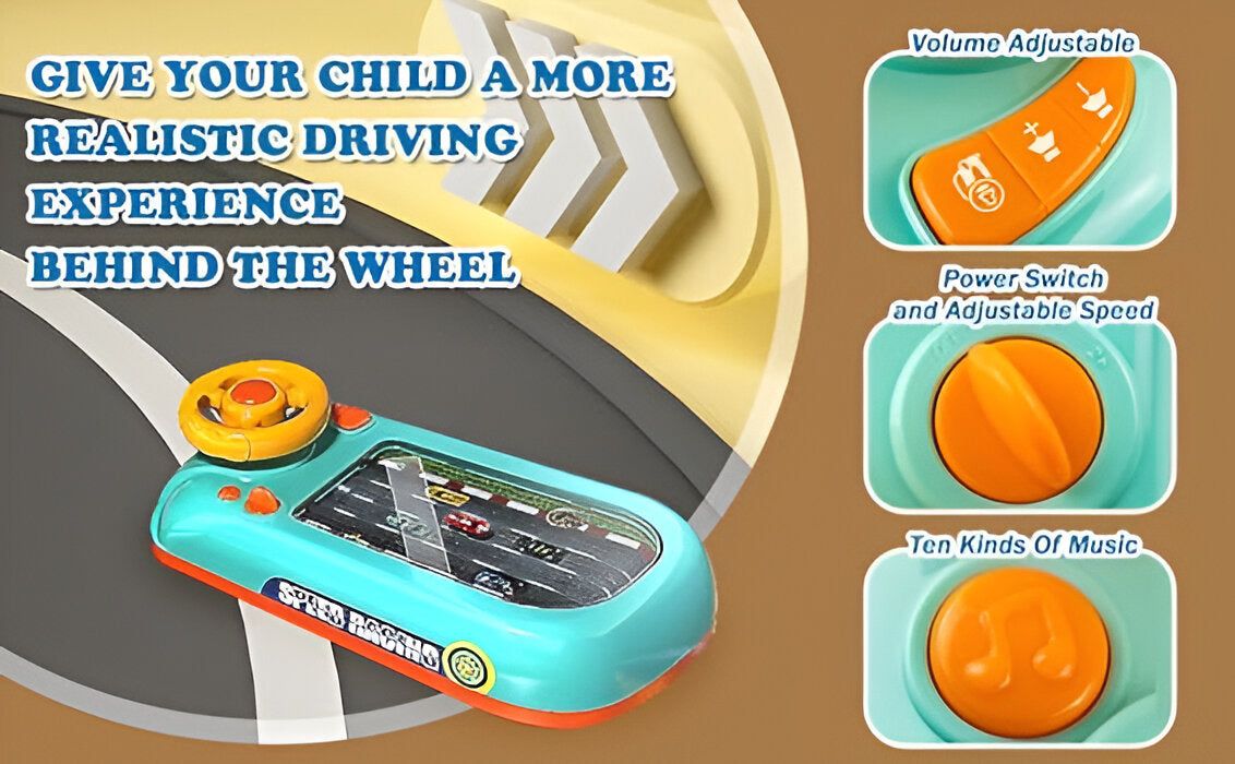 Ignite their imagination and develop fine motor skills with this dynamic driving simulator, offering a realistic, behind-the-wheel experience complete with adjustable speed and ten fun musical options.